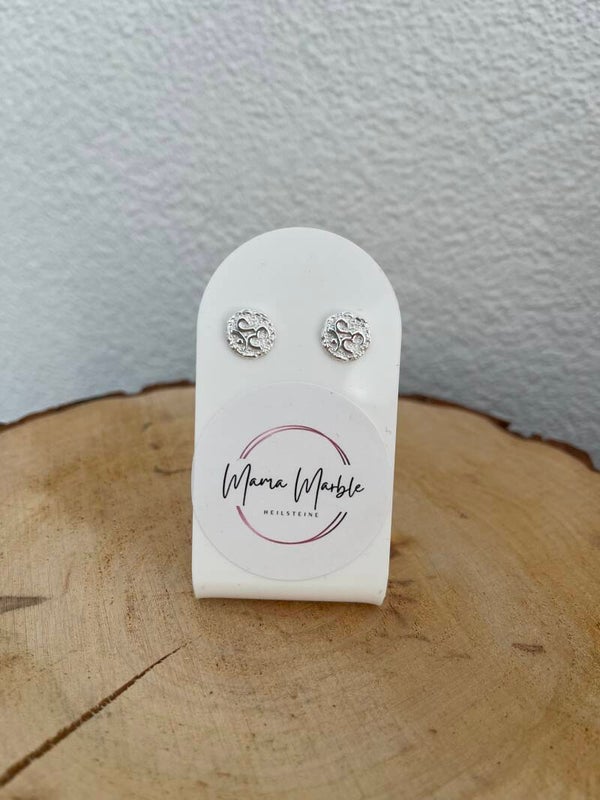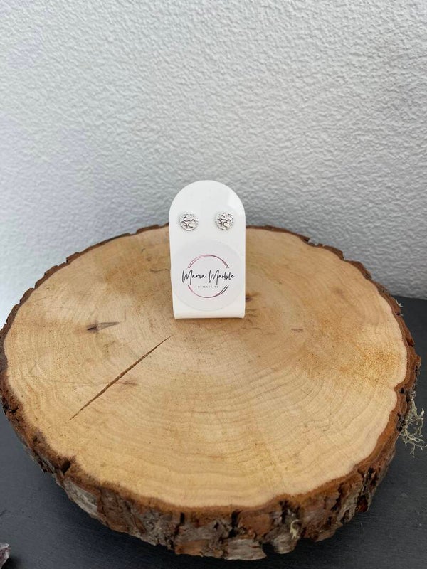Kleine Ohrstecker aus Silber 925 mit dem Om Symbol.Das Om ist eine heilige Silbe im Hinduismus und es beschreibt das universelle Ganze. Aum gilt als Manifestation der spirituellen Kraft.