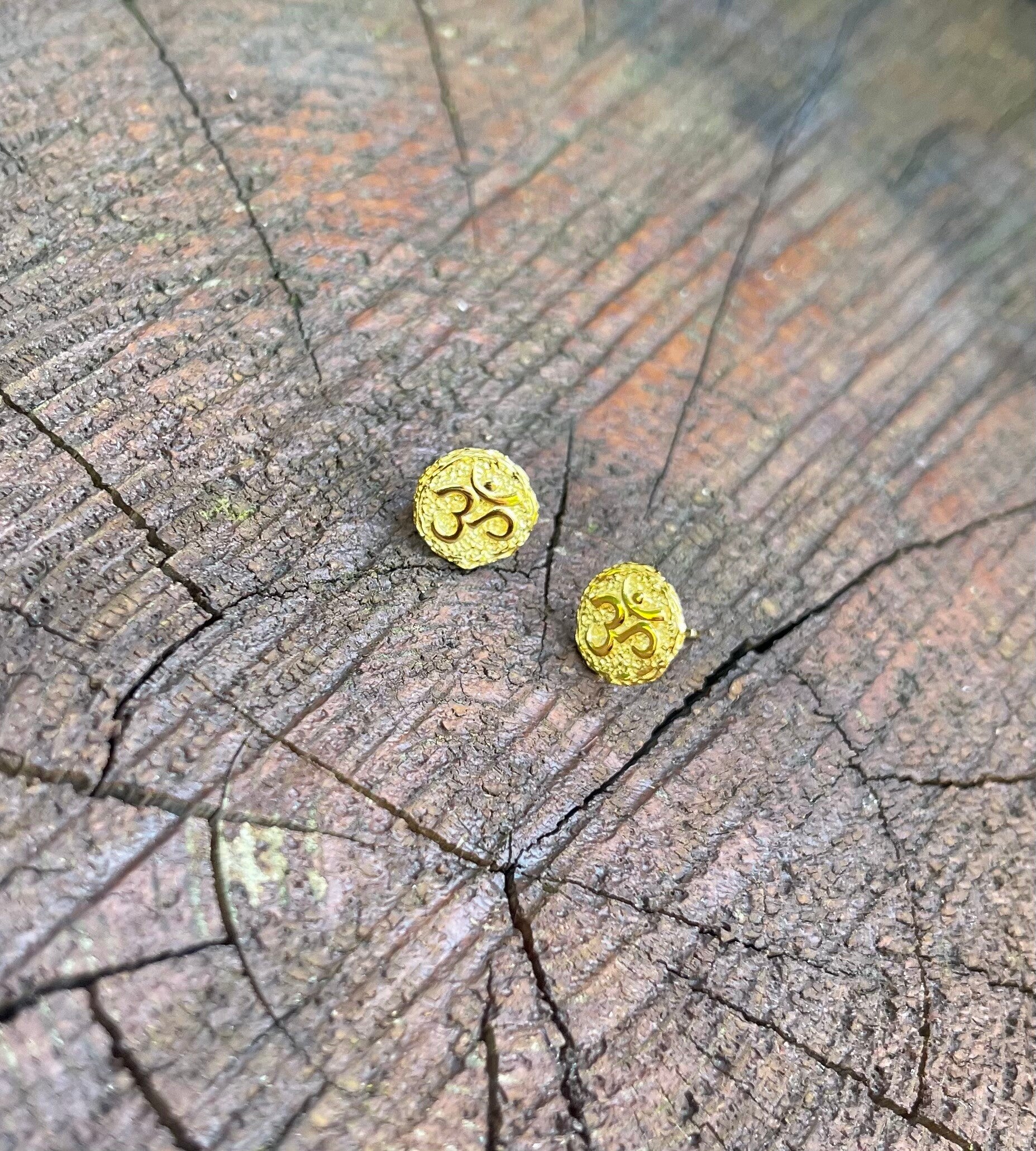 Kleine Ohrstecker aus vergoldetem Silber 925 mit dem Om Symbol.
